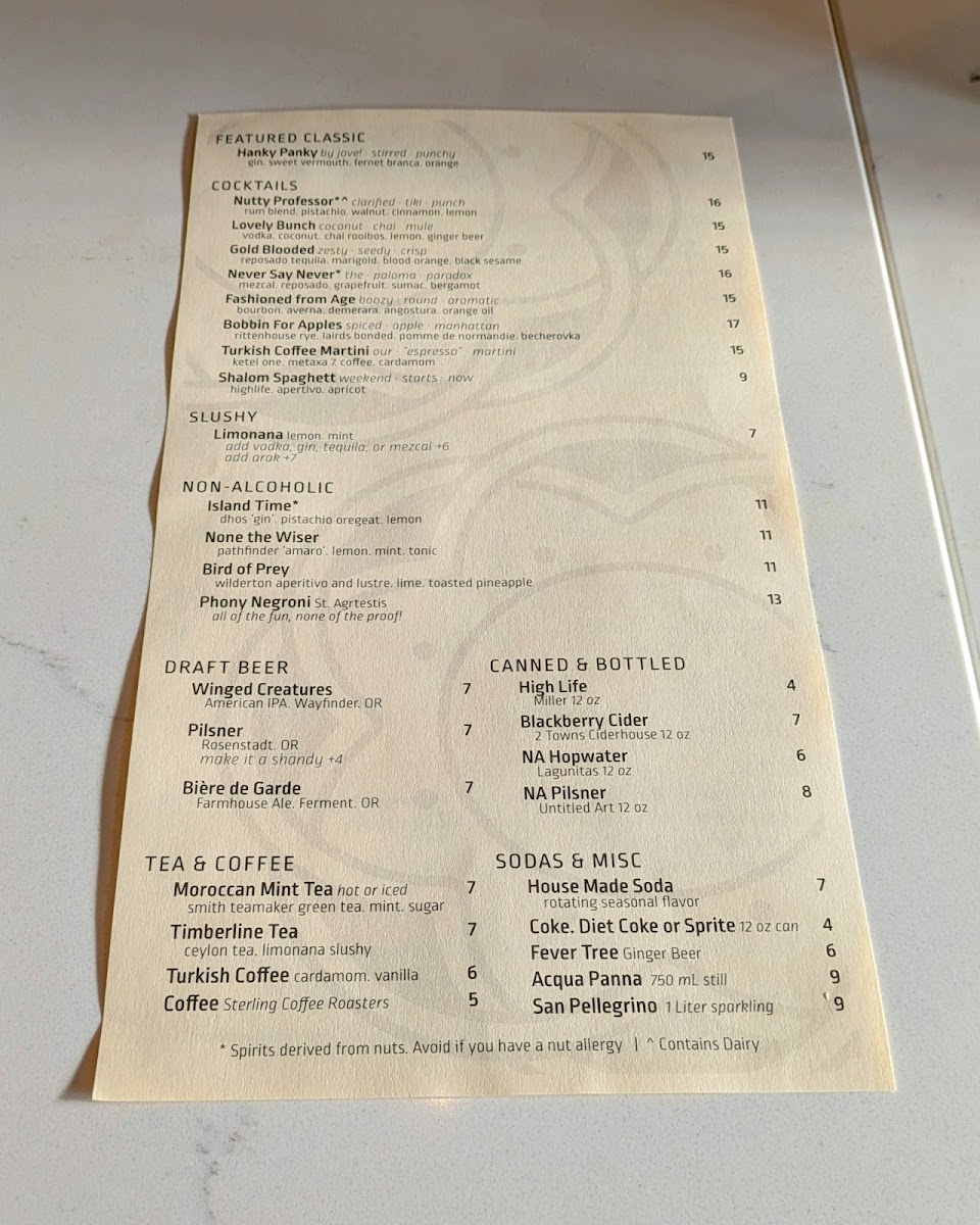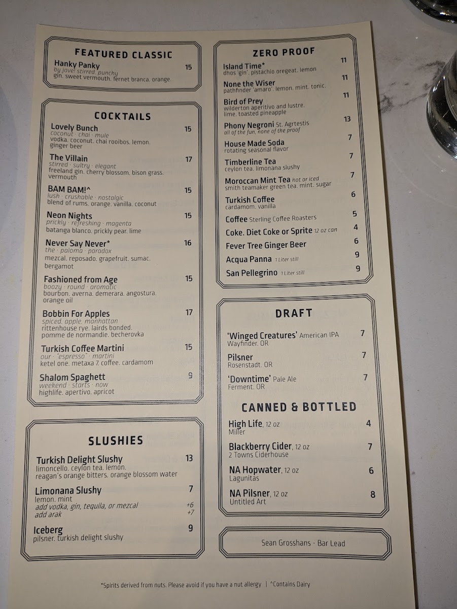 Alongside the food, the cocktail bar offers a range of approachable drinks designed to enhance the overall experience. From herbaceous mixes like the Thyme cocktail to creatively balanced options, the drinks fit naturally with the friendly, unhurried pace of the dining room. The menu’s fresh and well-rounded selections encourage enjoying a meal among friends or a quiet moment over a carefully crafted beverage.