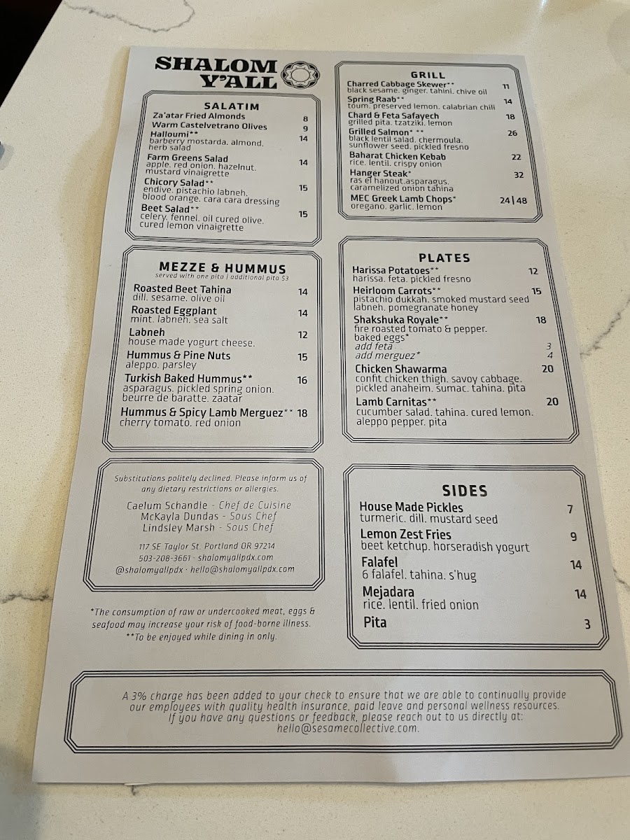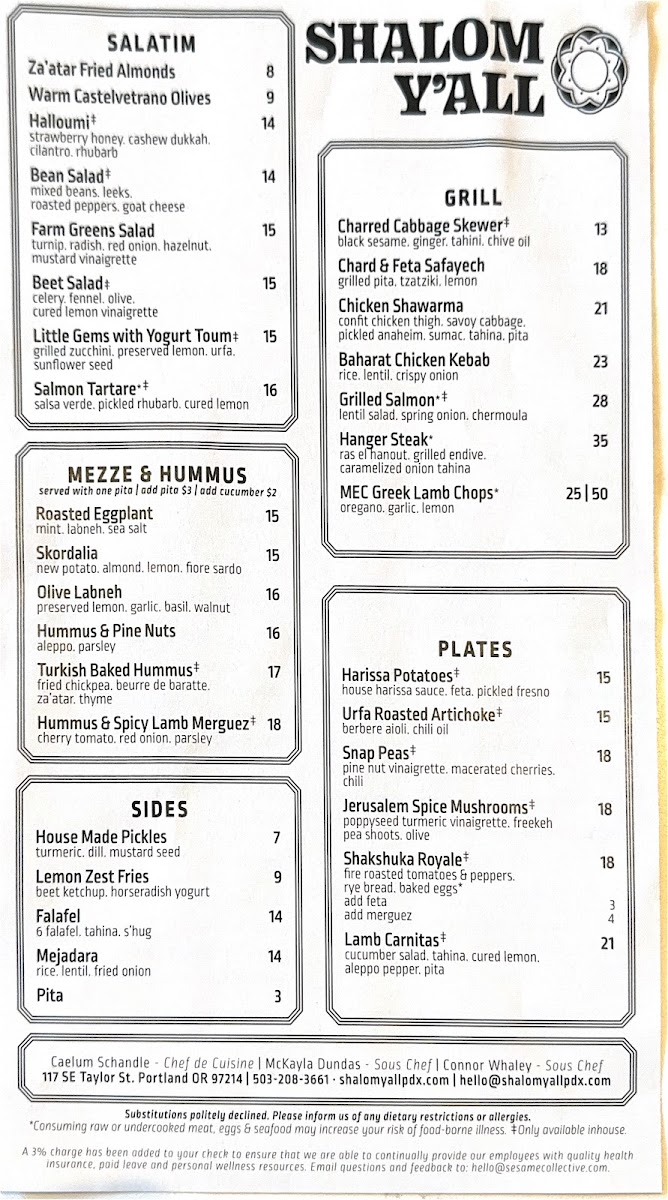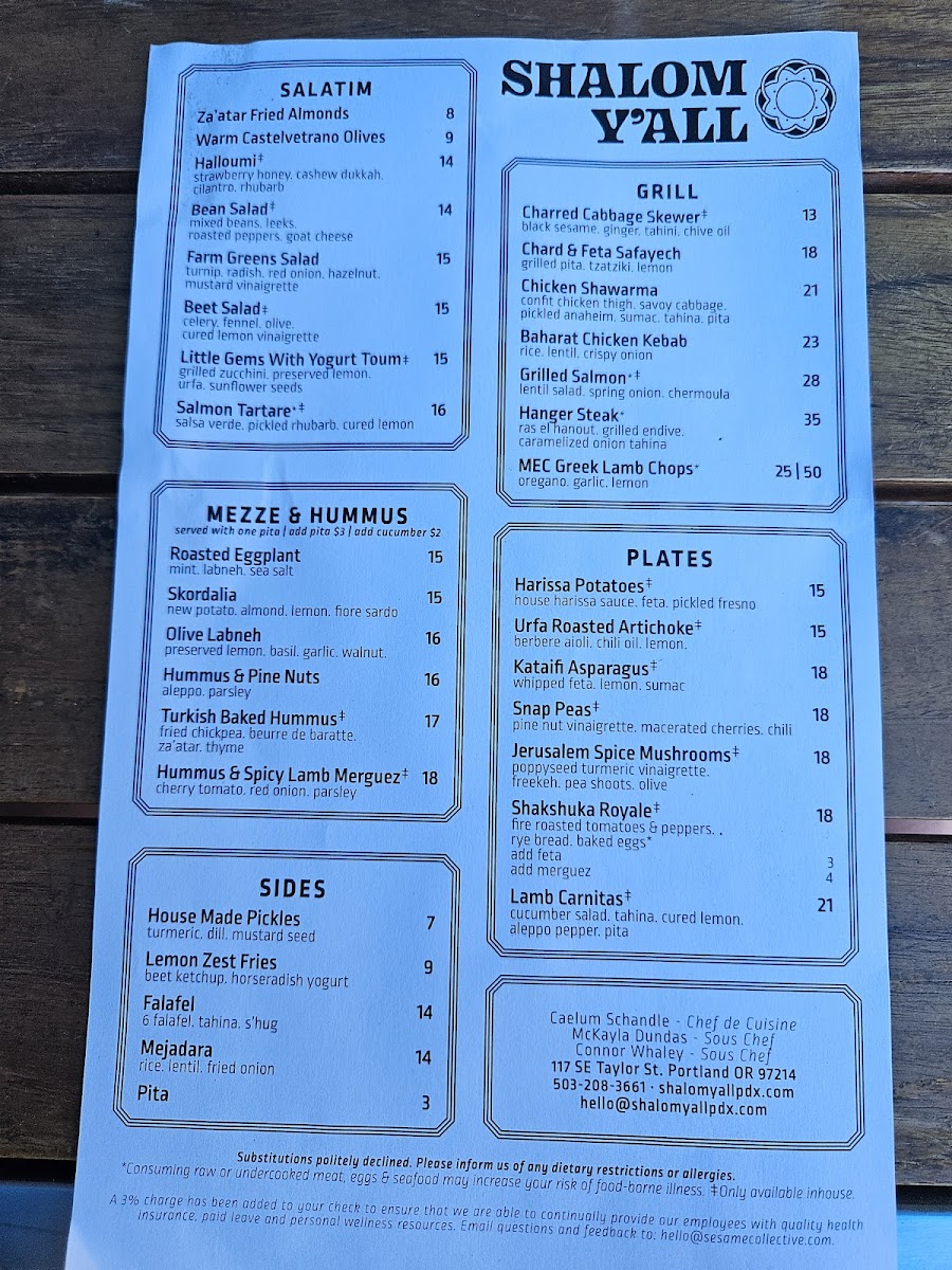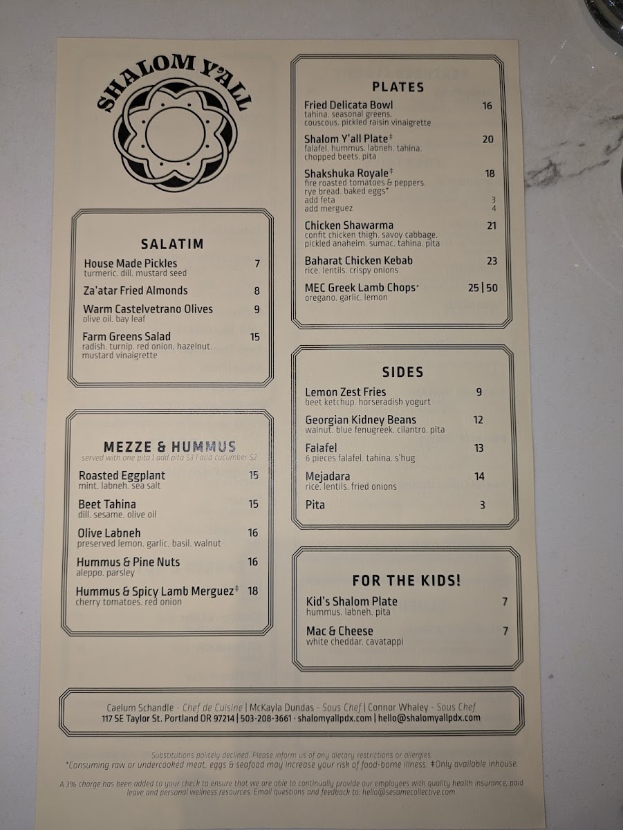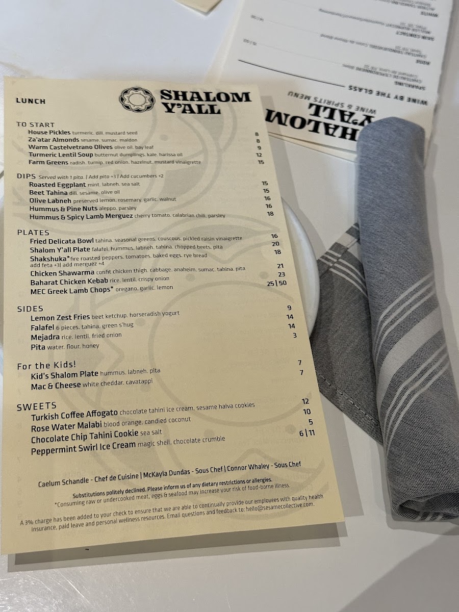 The menu at Shalom Y’all offers a thoughtfully curated selection of Mediterranean-inspired dishes that balance vibrant flavors with comforting simplicity. Whether you’re stopping by for a relaxed lunch or a casual dinner, you’ll find options that invite sharing and savoring in a laid-back yet refined atmosphere.